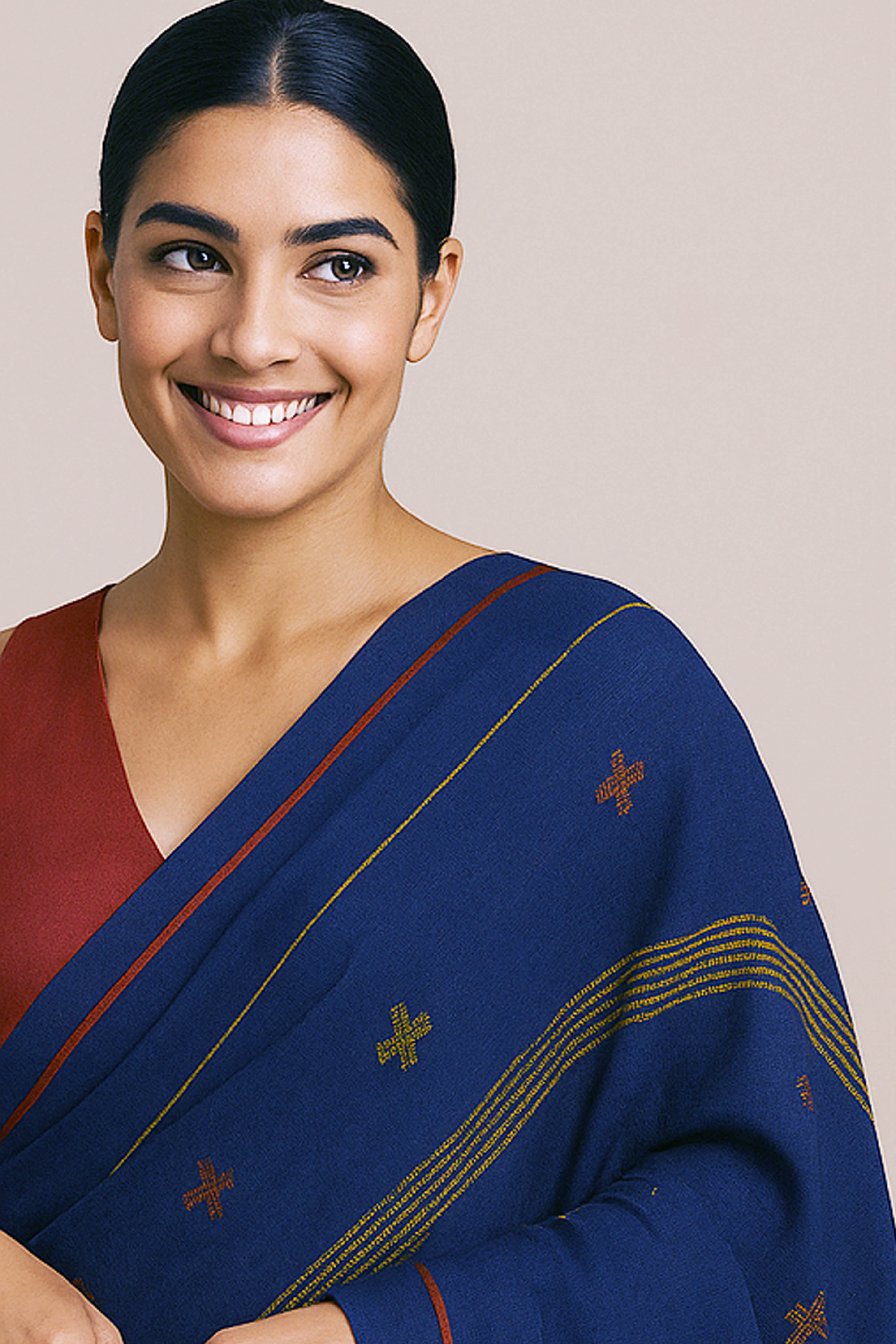 Blue & Rust Red Jamdani Cotton Tissue Saree