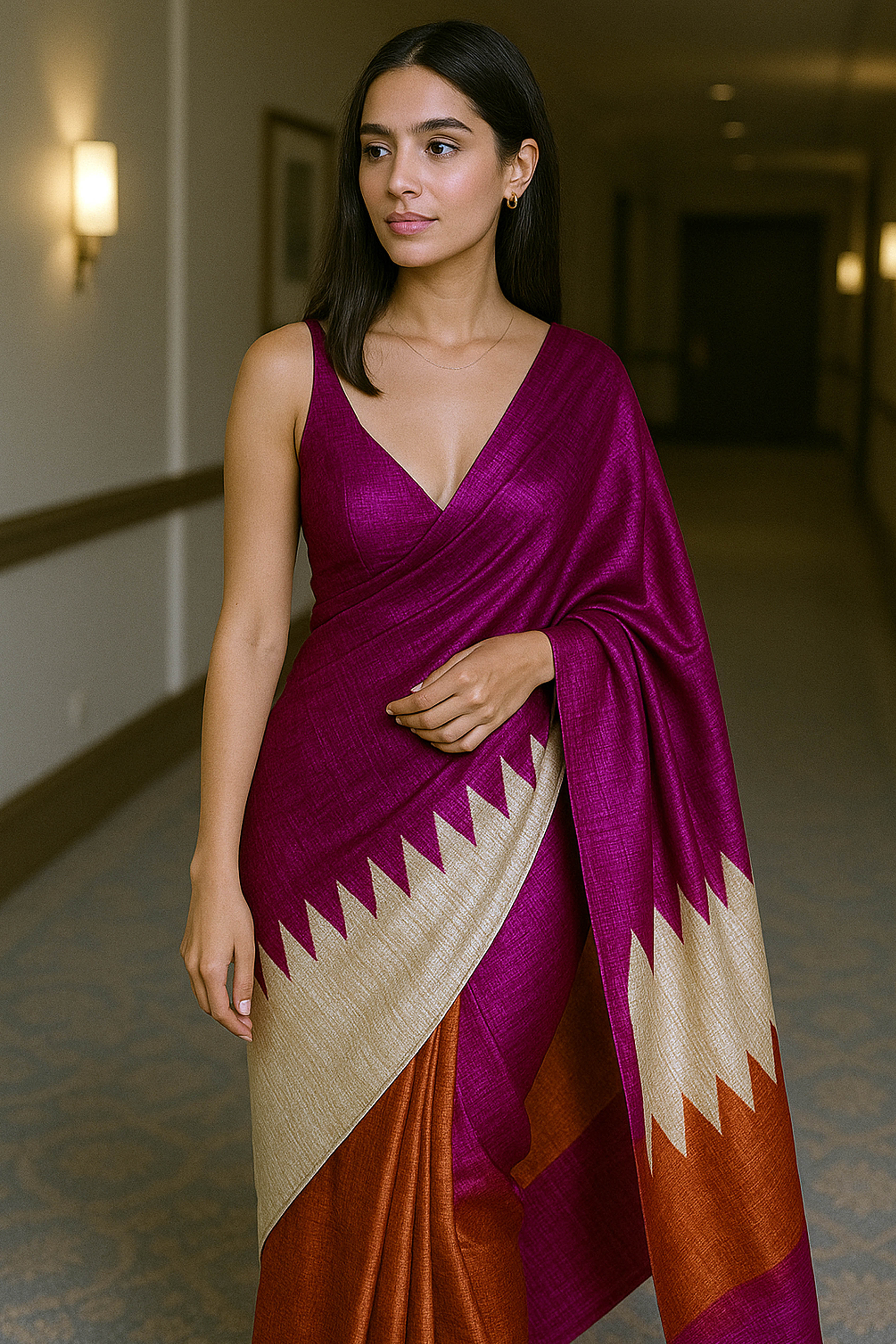 Divya Pure Tussar Silk Saree in Magenta Colour with Contrast Light Grey Anchal
