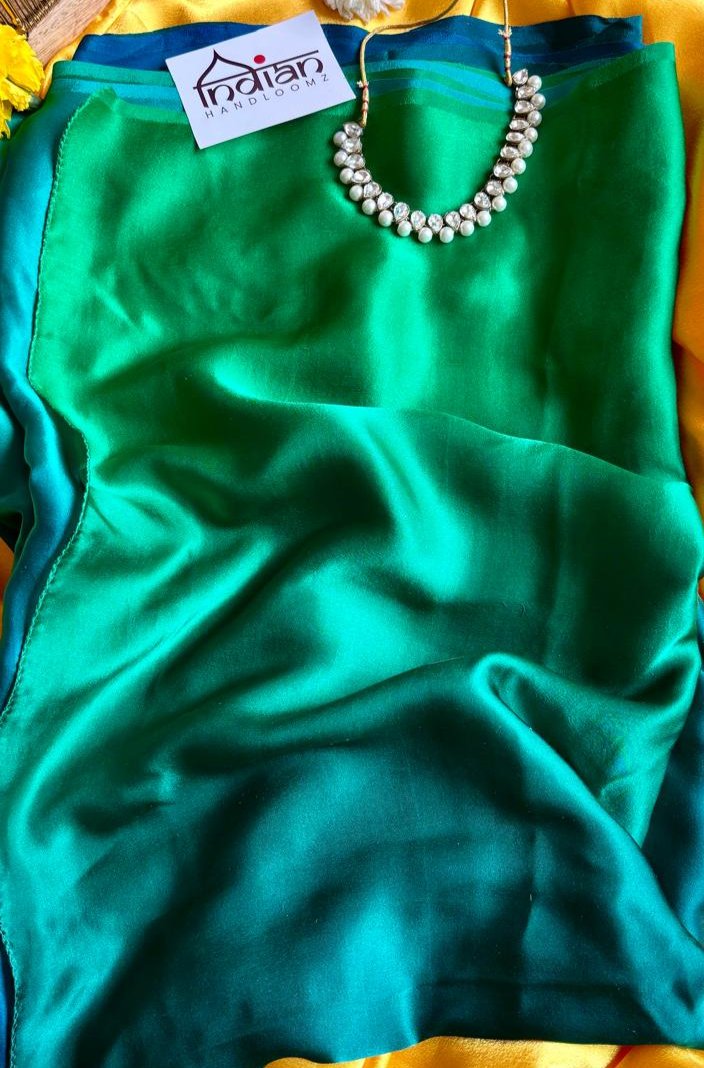 Ishvi Pure Satin Georgette Saree in Green Blue Ombre