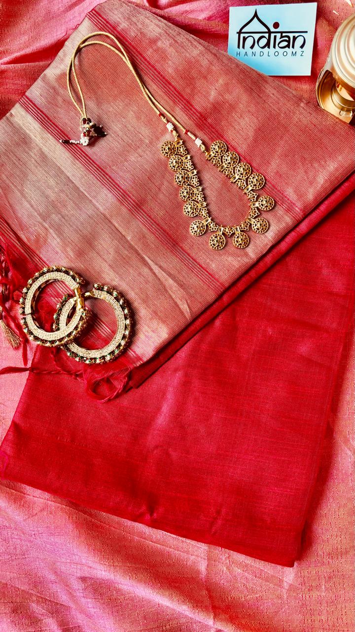 Jui Blended Tussar Silk Saree with Zari Woven Temple Border & Pallu