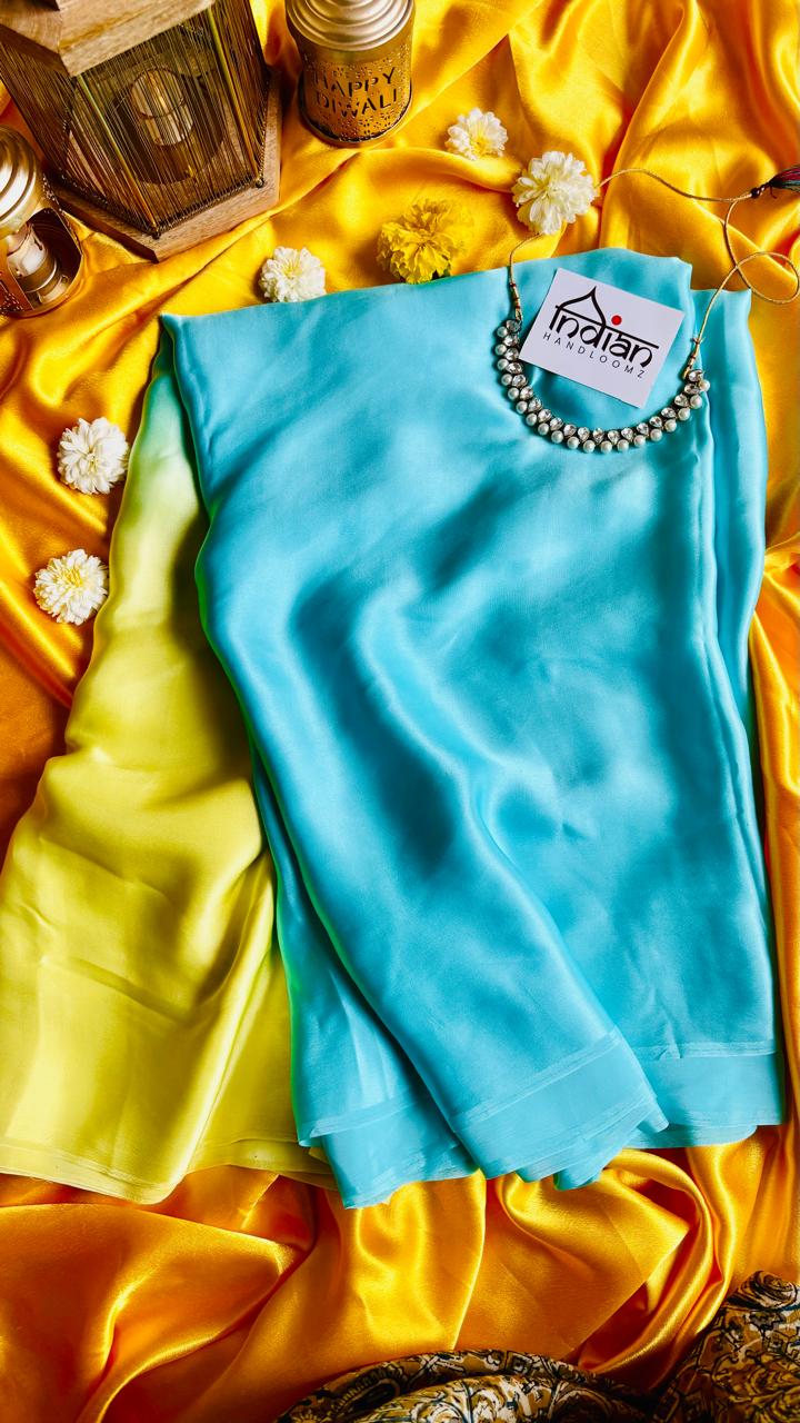 Vyoma Pure Satin Georgette Saree in Yellow to Sky Blue Ombre