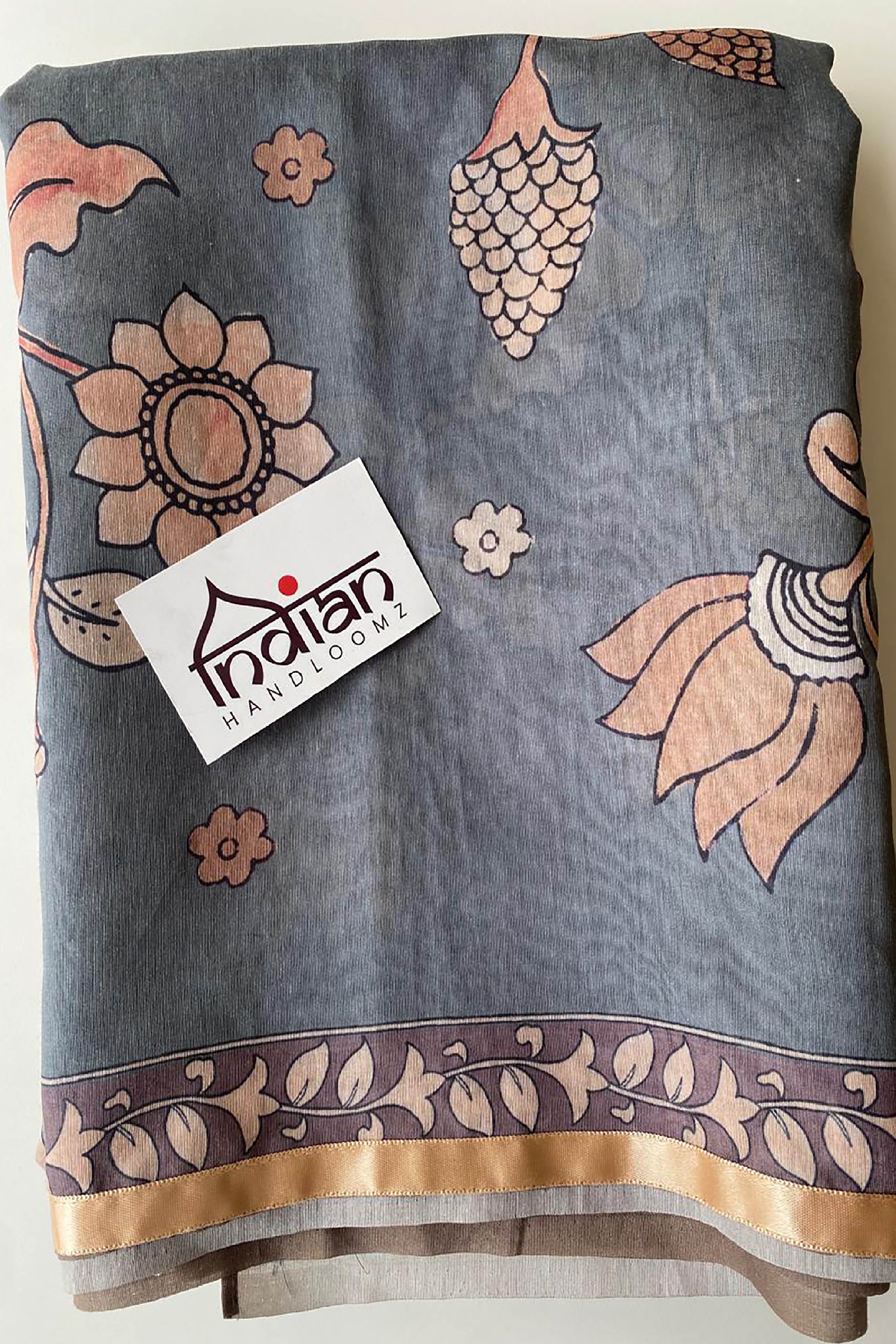 This Tissue Silk saree is the fashion sensation of the season. It is light weight and comfortable with a soft feel, natural sheen and easy draping with kalamkari handlblock print on it making it an elegant and comfortable option for weddings and events.